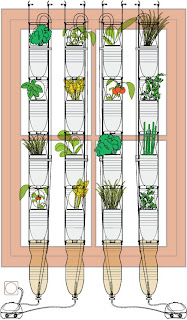 Este movimiento verde ha desarrollado un "nuevo "sistema colgante que además, recicla, a través de la reutilización de botelles como maceteros (ver fotos superior e inferiores )